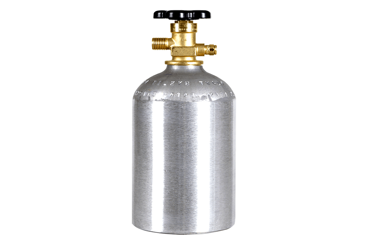 The 10 ltr cylinder has a size of 230 x 80 mm, a water capacity of 1 litre, a maximum filling pressure of 10 bar / 145 PSIG and a cylinder connection of 7/16” 28 NS/2 male. The 34 ltr cylinder has a size of 281 x 74 mm, a water capacity of 0.9 litres, a maximum filling pressure of 34 bar / 500 PSIG and a cylinder connection of 5/8” 18 UNF C10 female. The 58 ltr cylinder has a dimension of 359 x 90 mm, a water capacity of 1.6 litres, a maximum filling pressure of 34 bar / 500 PSIG and a cylinder connection of 5/8” 18 UNF C10 female. The 110 ltr cylinder has a size of 359 x 90 mm, a water capacity of 1.6 litres, a maximum filling pressure of 68 bar / 1000 PSIG and a cylinder connection of 5/8” 18 UNF C10 female. Disposable gas cylinders are made of aluminum alloy.